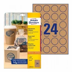 Naturalne Etykiety Samoprzylepne Avery Okrągłe śr. 40mm 24/A4 Brązowe No.L7105-25