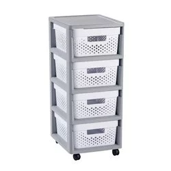 Regał Infinity 4x10l Szufladami Szary/Biały Ażurowy KD / Curver 239845
