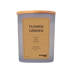 Świeca sojowa DONAU HOME w szarym szkle drewniana pokrywa i knot Flower Garden 200g