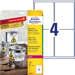 Etykiety Polietylenowe Ultra Resistant Avery 99,1x139 4/A4 A'40 Białe No.L7915-40