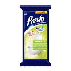 Presto Ściereczki do łazienki – nawilżane chusteczki skutecznie usuwające osady z mydła, kamienia i zabrudzenia typowe dla armatury łazienkowej.