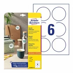 Etykiety Samop. Avery Okrągłe śr. 80mm 6/A4 Trwałe Białe No.6229-10