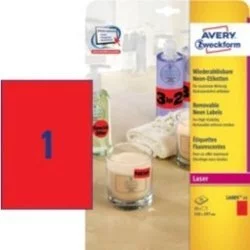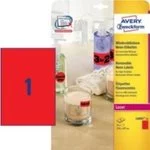 Etykiety Usuwalne Neonowe Avery 210x297.6 1/A4 A'25 Czerwone No.L6005-25