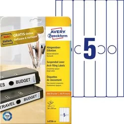 Etykiety do teczek z zawieszkami Avery 45.7x16.9 64/A4 A'25 Białe No.L6021REV-25