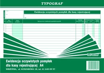 Ewidencja Pomyłek Dla Kasy Rejestrującej A4 Offset 02289 /Typograf