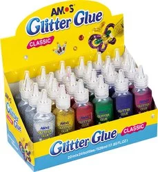 Klej z brokatem AMOS GCL22D24 – 22ml x 6 kolorów x 4 szt.