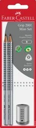 Zestaw 2 Ołówków Grip+Temperówka Grip 2001 Mini Srebrna Blister Faber-Castell