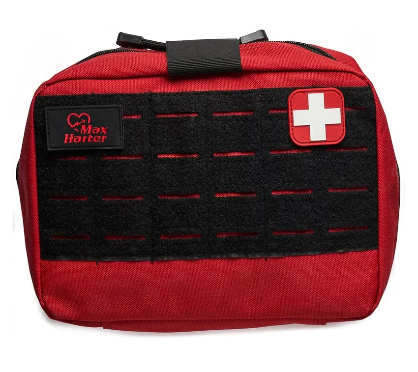 Apteczka firmowa - Biuro MAXHARTER, model rozszerzony, czerwony — Zapewnienie bezpieczeństwa i zdrowia pracownikom podczas pracy to obowiązek każdego pracodawcy. Dobrze wyposażona apteczka to podstawa, aby czuć się bezpiecznie i móc podjąć skuteczne działania ratownicze w nagłych sytuacjach. Apteczka firmowa TR w wersji rozszerzonej to uniwersalny zestaw medyczny, który sprawdzi się zarówno przy niegroźnych urazach jak i przy poważnych zdarzeniach jak np. Masywny krwotok czy oparzenie. Skład wyposażenia: Rękawiczki diagnostyczne, nitrylowe - 10 szt. Maseczka do RKO z filtrem - 1 szt. Opatrunek z wkładem chłonnym 5 x 7,2 cm - 4 szt. Opatrunek z wkładem chłonnym 10 x 10 cm - 2 szt. Siatka opatrunkowa nr 3, długość 1 m - 1 szt. Siatka opatrunkowa nr 6, długość 1 m - 1 szt. Paski do zamykania ran 3 x 75 mm (op. 5 sztuk) - 1 szt. Paski do zamykania ran 12 x 100 mm (op. 6 sztuk) - 1 szt. Plaster na odciski 19 mm x 76 mm - 4 szt. Plaster na odciski 25 mm x 76 mm - 2 szt. Pęseta jednorazowa - 1 szt. Chusta trójkątna włókninowa - 1 szt. Szyna usztywniająca 46 cm - 1 szt. Nożyczki ratownicze Black Front PRO - 1 szt. Opaska elastyczna 12 cm x 4 m - 2 szt. Opaska dziana 10 cm x 4 m - 2 szt. Gaza opatrunkowa jałowa 1 m2 - 2 szt. Kompres gazowe jałowe 10 x 10 cm 4 - szt. Przylepiec tkaninowy 2,5 cm x 5 m - 1 szt. Plaster tkaninowy z opatrunkiem 6 cm x 1 m - 1 szt. Koc ratunkowy NRC (folia izotermiczna) - 2 szt. Żel schładzający o pojemności 120ml - 1 szt. Opatrunek hydrożelowy 10 x 10 cm Kleszczołapki - 1 szt. Płyn do dezynfekcji ran i błon śluzowych NEOCIDE 50 ml – 1 szt. Aparat do płukania oka – 1 szt. Opaska uciskowa, staza taktyczna Black Front - 1 szt. Marker permanentny - 1 szt. Apteczka wraz z panelem rzepowym systemu Molle - 1 szt. Gumki (troki) mocujące szybkiego montażu - 2 szt. Saszetka na zestaw: Saszetka Trauma Responder (TR) to futerał zaprojektowany na rozbudowane apteczki pierwszej pomocy, wyposażone w produkty medyczne gotowe do u