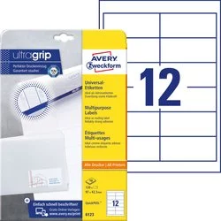 Etykiety Samoprzylepne Usuwalne UltraGrip Avery Office&Home 97x42,31 12/A4 A'10 Białe No.6123
