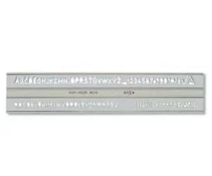 Szablony literowo-cyfrowe 5mm pisma pionowego. Umożliwiają pisanie liter małych i dużych, cyfr, znaków interpunkcyjnych i specjalnych oraz symboli matematycznych.