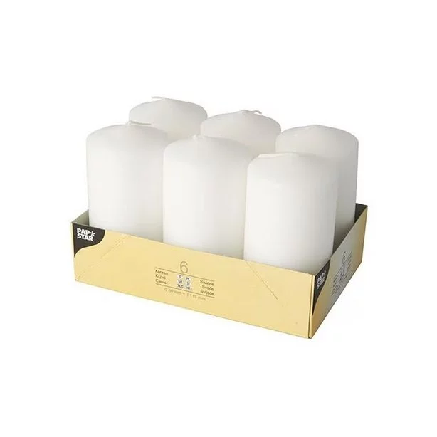 Świece pieńkowe O60 mm białe — 6 szt. / Papstar