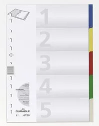 Przekładki A4+ 6 części 1-6 kolorowe indeksy i przednia okładka PP do opisu / Durable