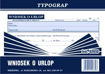 Wniosek o Urlop A6 Offset 02030 /Typograf