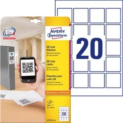Etykiety do Kodów QR Avery 45x45 20/A4 A'25 Białe No.L7121-25