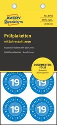 Etykiety Inspekcyjne 2019 NoPeel Avery Śr.30 10/A4 A'8 Niebieskie No.6946