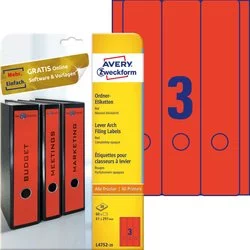 Etykiety do segregatora Avery 61x297 3/A4 A'20 Czerwone No.L4752-20