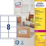 Etykiety Recyklingowane Samoprzylepne Avery 99.1x67.7 8/A4 A'100 Białe No.LR7165-100