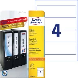 Etykiety do segregatora Avery 192x61 4/A4 A'100 Białe No.L4761-100