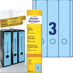 Etykiety do segregatora Avery 61x297 3/A4 A'20 Niebieskie No.L4753-20
