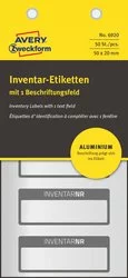 Etykiety Inwentaryzacyjne Aluminiowe Avery 50x20 10/A4 A'5 Srebrno-Czarne No.6920
