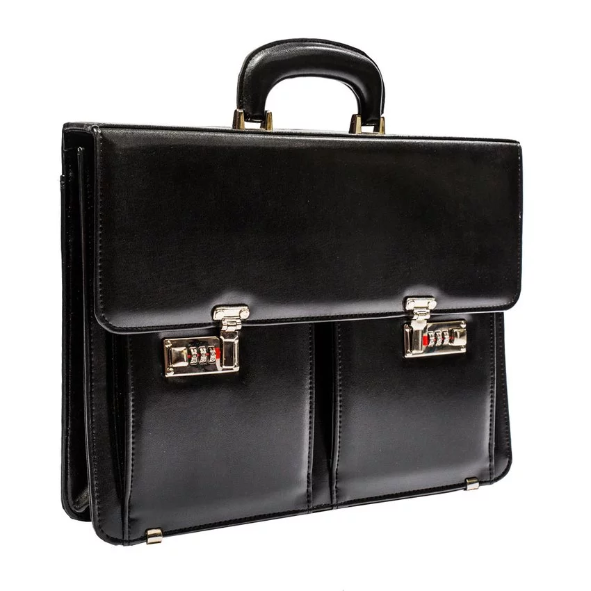Teczka męska z dwoma dużymi przegrodami przedzielonymi płaską kieszenią zamykaną na zamek błyskawiczny. W dodatkowej, naszytej z przodu odchylanej kieszeni znajduje się miejsce na trzy długopisy, trzy wizytówki oraz telefon komórkowy.