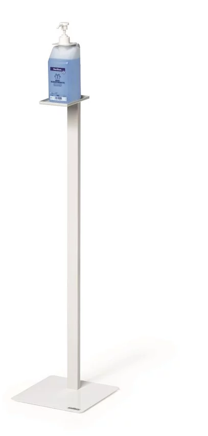 Solidny i wysokiej jakości dozownik do środków dezynfekujących jako mobilny stojak podłogowy, który można dowolnie ustawić