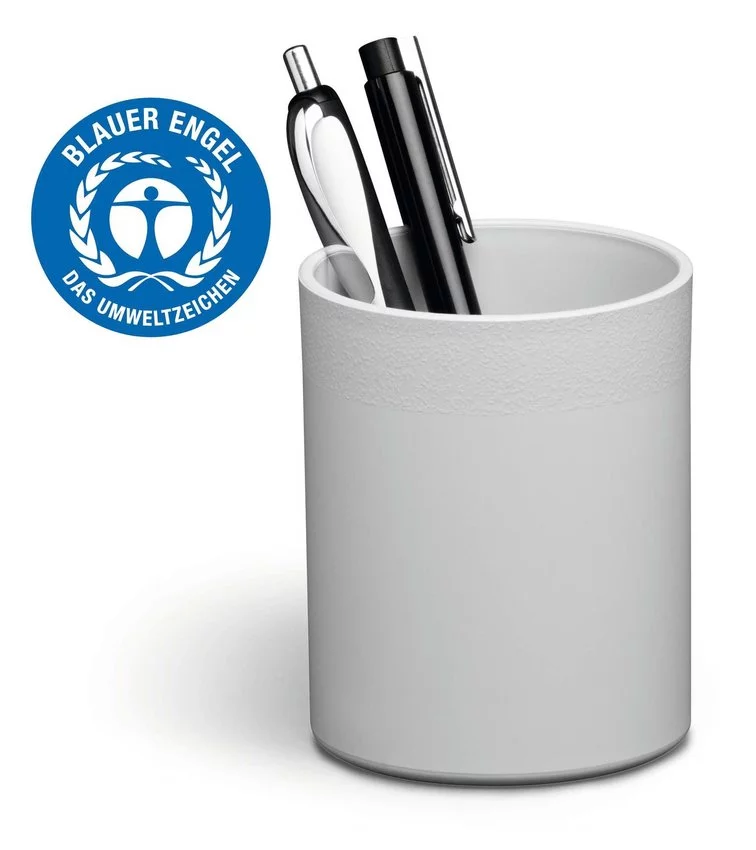 Szary pojemnik na długopisy, nożyczki, pisaki, itp. z tworzywa sztucznego z recyklingu w jakości z certyfikatem Blue Angel (zobacz w zakładce Dodatkowe Informacje)