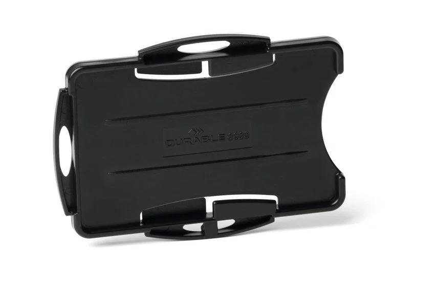 Etui w czarnym kolorze do 2 kart magnetycznych lub identyfikacyjnych bez zapięcia z serii ECO wyprodukowane w 80% z surowców recyklingowanych.