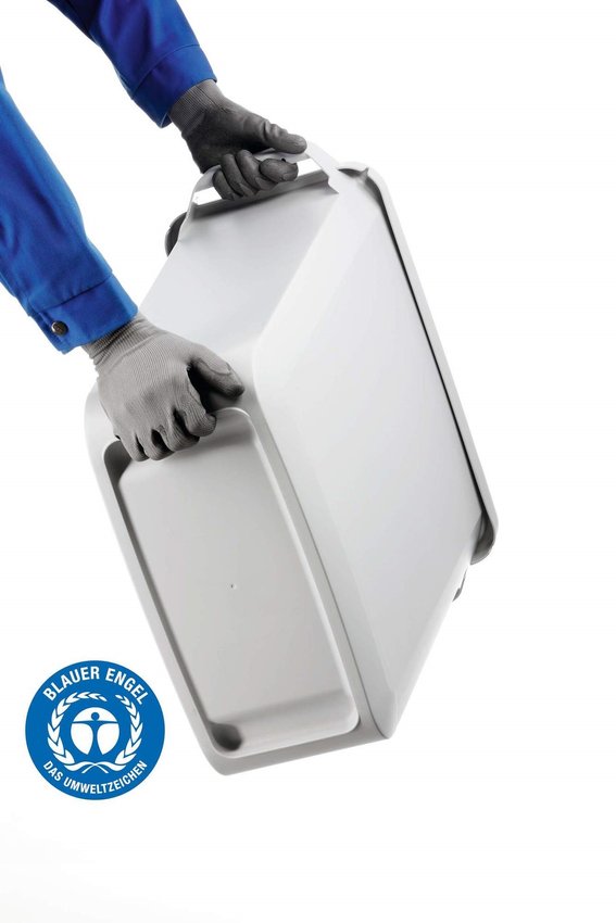Uchwyty ułatwiające przenoszenie, od dołu pojemnika spec głębienie na pewny dwuręczny uchwyt pojemnika.