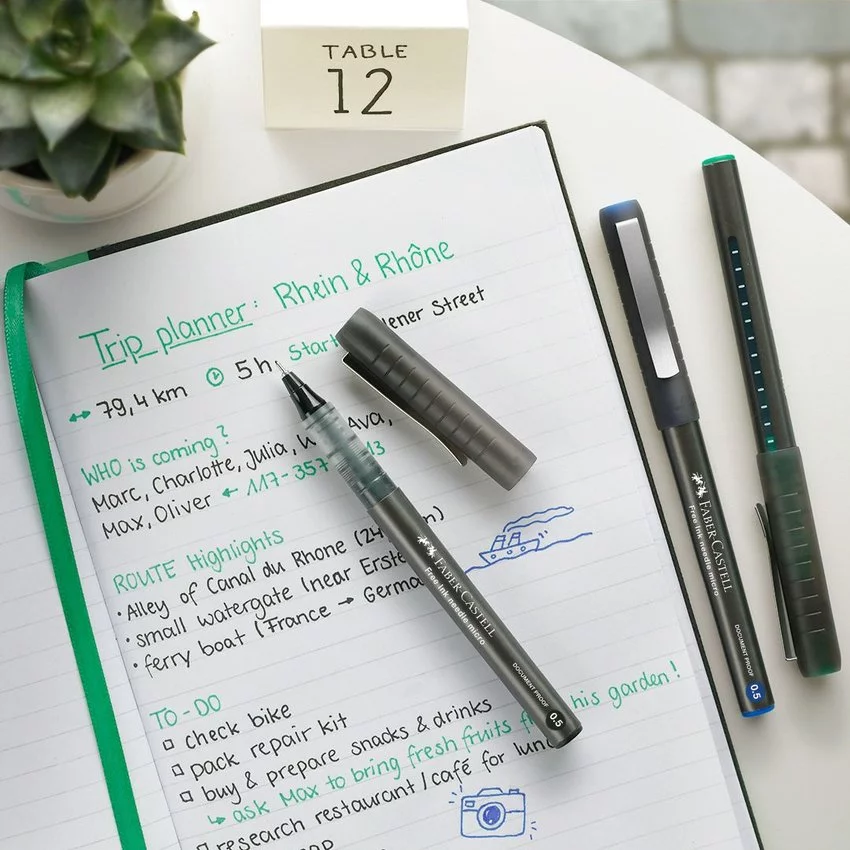 Free Ink Roller Faber-Castell łączy w sobie zalety pióra wiecznego i kulkowego. Końcówka wykonana z metalu wytrzyma mocny nacisk podczas pisania, a równomierny przepływ atramentu zapewni dodatkowy komfort. Posiada okienko do kontroli poziomu tuszu. Wyposażony w igłową końcówkę. Kapilarny system podawania tuszu zapewnia stały przepływ oraz wykorzystanie do ostatniej kropli. Szerokość linii pisania 0,7 mm. Kolor czarny.