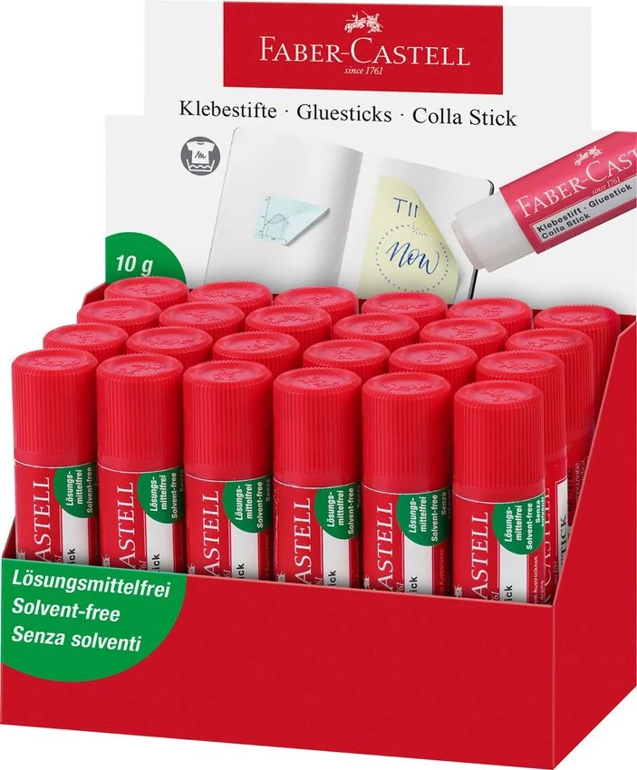 Klej w sztyfcie Faber-Castell 10 g. Uniwersalny i praktyczny, odpowiedni również dla dzieci. Nie zawiera rozpuszczalników i nie jest toksyczny. Do prac plastycznych i DIY, papieru, zdjęć, widokówek itp. Spieralny z większości tkanin.