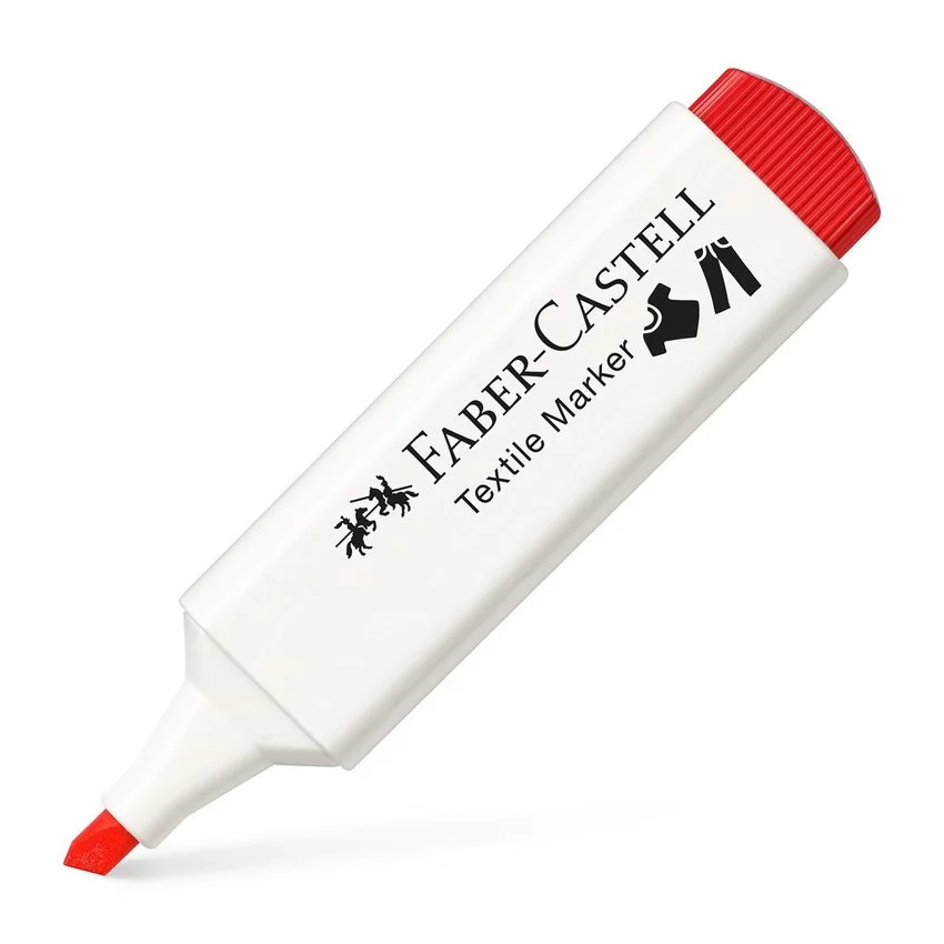 Marker do wykonywania kolorowych dekoracji na tkaninach. Tusz utrwala się po 24 h lub natychmiast po zaprasowaniu żelazkiem bez pary. Odporne na spieranie do 40 stopni C (60 stopni dla bawełny i innych naturalnych włókien). Ścięta końcówka umożliwia tworzenie linii o grubości 1, 2 lub 5 mm. Obudowa i zatyczka wykonane z tworzywa pochodzącego z recyklingu. Kolor czerwony.