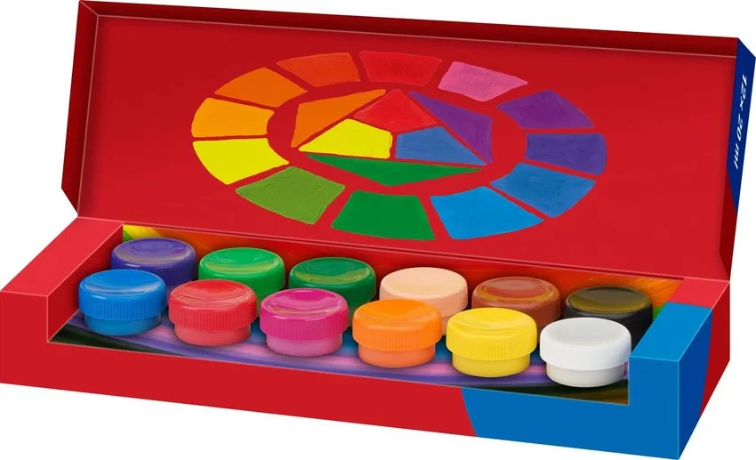 Farby plakatowe Faber-Castell 20 kolorów w zakręcanych pojemniczkach 20 ml w opakowaniu kartonowym. Doskonałe na zajęcia plastyczne w przedszkolu i szkole oraz do zabawy w czasie wolnym. Wysokiej jakości i wysoce napigmentowane, kryjące, intensywne kolory są przeznaczone do prawie wszystkich powierzchni i szerokiej gamy technik malowania i mieszania. Odporne na działanie światła. Po wyschnięciu nie odpryskują i nie łuszczą się, zapewniając profesjonalny efekt pracy młodych artystów. Szczelne, zakręcane pojemniczki z nakrętką w kolorze farby. Gotowe do użycia.