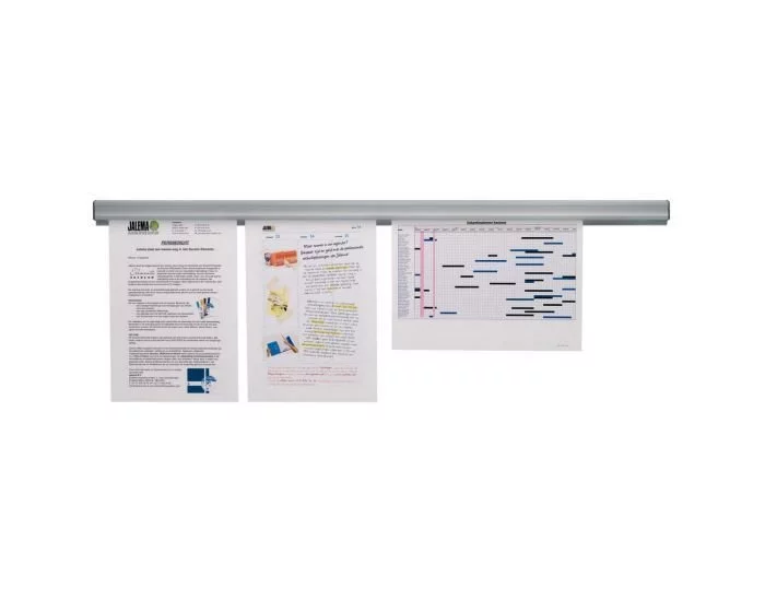 Szyna aluminiowa Jalema Grip do prezentacji dowolnego rozmiaru ogłoszeń i dokumentów. Odporna na wstrząsy, z mechanizmem z rolkami z tworzywa sztucznego i końcówkami starannie wykończonymi czarnymi zaślepkami. Umożliwia nieograniczoną rozbudowę poprzez zawieszenie wielu uchwytów Jalema Grip obok siebie. Połączenie jakości i designu – szyna jest zarówno elegancka, wygodna i ergonomiczna. Dostarczana wraz ze śrubami do montażu i taśmą samoprzylepną. Doskonała do każdego pomieszczenia, gdzie istnieje konieczność wyświetlania ogłoszeń i różnego rodzaju informacji.