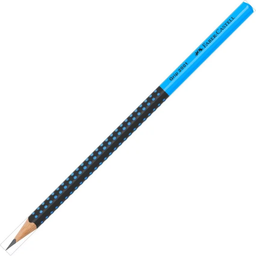 Ołówek grafitowy Grip 2001 Two Tone Faber-Castell w kolorze czarno-niebieskim. Nawet w czasach zdominowanych przez komputery, telefony i internet, ołówek wciąż pozostaje nieodłącznym towarzyszem codzienności. To doskonałe w swojej prostocie narzędzie. Ergonomiczny trójkątny kształt i charakterystyczna dla tej serii opatentowana strefa Grip z małymi, antypoślizgowymi punktami zapewniają wysoki komfort użytkowania i niemęczące, wygodne pisanie i szkicowanie. Odpowiedni również dla leworęcznych. Z odpornym na pękanie grafitem o stopniu twardości HB, dzięki bezpiecznemu procesowi wiązania (SV). Wykonany z certyfikowanego drewna pochodzącego ze zrównoważonego i odpowiedzialnie zarządzanego leśnictwa. Powierzchnia pokryta lakierem na bazie wody – bezpiecznym dla środowiska i zdrowia dzieci. Produkcja neutralna pod względem emisji dwutlenku węgla.