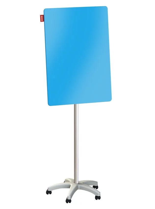 Flipchart szklany mobilny MemoBe.Flipchart wykonany z wysokiej jakości szkła hartowanego biodegradowalnego o grub. 4 mm. Tył tablicy z jednolitego, galwanizowanego metalu. Dobre właściwości suchościeralne i magnetyczne. Rozmiar tablicy 70x100 cm. Wygodna regulacja wysokości. Podstawa mobilna na plastikowych kółkach z blokadą (podstawa 5-ramienna). Stabilna konstrukcja - stelaż metalowy w kolorze popielatym. Dostępne kolory szkła w regularnej ofercie: biały, czarny, niebieski. W zestawie półka na markery w kolorze powierzchni szkła.Flipchart przeznaczony do pisania markerami kredowymi i suchościeralnymi oraz zawieszania kartek za pomocą magnesów. Produkt skierowany jest zarówno do biur, gdzie doskonale sprawdza się podczas spotkań, konferencji czy szkoleń i stanowi znakomite wsparcie dla liderów spotkań biznesowych, jak i rekomendowany jest do szkół, gdzie pełni rolę nowoczesnego środka dydaktycznego, dzięki któremu w jasny i czytelny sposób prezentowane są komunikaty wizualne podczas lekcji i wykładów.Flipcharty pozwalają w łatwy i szybki sposób zanotować i zaprezentować najistotniejsze informacje. Stanowią również doskonałą alternatywę dla tablic, których montaż jest często niemożliwy we wszystkich pomieszczeniach, w których odbywają się spotkania biznesowe. Aby zachować wysoką jakość produktu i utrzymać osłonę w czystości należy jej powierzchnię czyścić za pomocą miękkiej ściereczki, można używać płynów dezynfekujących na bazie alkoholu. Połączenie wysokiej jakość szkła hartowanego oraz eleganckie i ciekawe wykończenie sprawiają, że flipchart doskonale sprawdza się nie tylko jako produkt codziennego użytku, ale i jako interesujący i szlachetny przedmiot stanowiący ciekawy element wystroju każdego wnętrza.Okres gwarancji wynosi 2 lata.