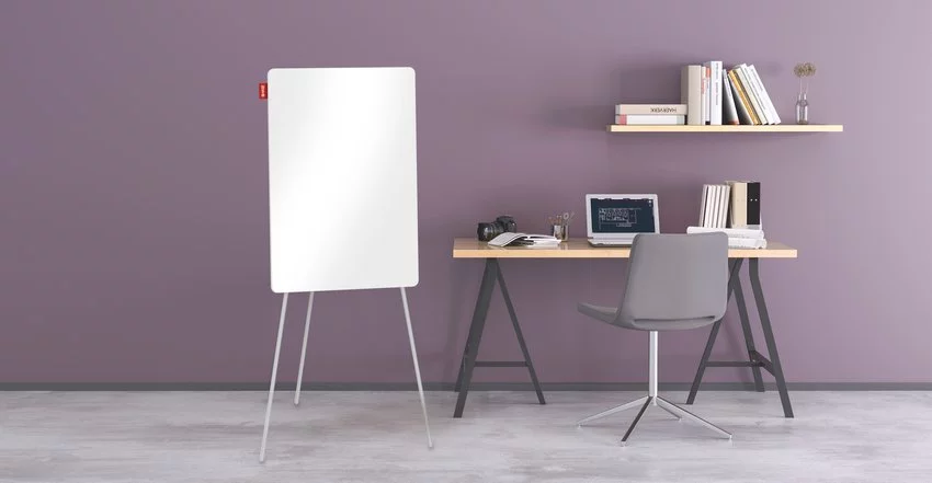 Flipchart szklany na trójnogu MemoBe.Flipchart wykonany z wysokiej jakości szkła hartowanego biodegradowalnego o grub. 4 mm. Tył tablicy z jednolitego, galwanizowanego metalu. Dobre właściwości suchościeralne i magnetyczne. Rozmiar tablicy 70x100 cm. Wygodna regulacja wysokości (do 180 cm). Stabilna konstrukcja na trójnogu. Stelaż metalowy w kolorze popielatym. Dostępne kolory szkła w regularnej ofercie: biały, czarny, niebieski. W zestawie półka na markery w kolorze powierzchni szkła.Flipchart przeznaczony do pisania markerami kredowymi i suchościeralnymi oraz zawieszania kartek za pomocą magnesów. Produkt skierowany jest zarówno do biur, gdzie doskonale sprawdza się podczas spotkań, konferencji czy szkoleń i stanowi znakomite wsparcie dla liderów spotkań biznesowych, jak i rekomendowany jest do szkół, gdzie pełni rolę nowoczesnego środka dydaktycznego, dzięki któremu w jasny i czytelny sposób prezentowane są komunikaty wizualne podczas lekcji i wykładów.Flipcharty pozwalają w łatwy i szybki sposób zanotować i zaprezentować najistotniejsze informacje. Stanowią również doskonałą alternatywę dla tablic, których montaż jest często niemożliwy we wszystkich pomieszczeniach, w których odbywają się spotkania biznesowe. Aby zachować wysoką jakość produktu i utrzymać osłonę w czystości należy jej powierzchnię czyścić za pomocą miękkiej ściereczki, można używać płynów dezynfekujących na bazie alkoholu. Połączenie wysokiej jakość szkła hartowanego oraz eleganckie i ciekawe wykończenie sprawiają, że flipchart doskonale sprawdza się nie tylko jako produkt codziennego użytku, ale i jako interesujący i szlachetny przedmiot stanowiący ciekawy element wystroju każdego wnętrza.Okres gwarancji wynosi 2 lata.