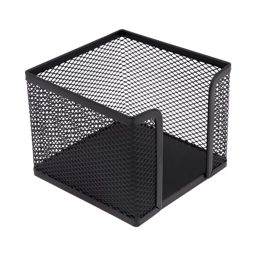 Przybornik do przechowywania karteczek MemoBe. Idealny jako dodatek nabiurkowy. Wygodne wkładanie karteczek przez otwór z góry kubika. Wygodny otwór z przodu do łatwego wyjmowania karteczek. Wykonany z eleganckiej, delikatnej metalowej siatki. Produkt dostępny jest w dwóch kolorach: czarny i srebrny.