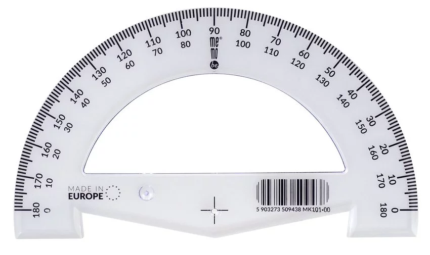 Kątomierz MemoBe by Pratel. Przezroczysty kątomierz 180 stopni. Posiada trwałą nieścieralną podziałkę. Zaokrąglone rogi zapewniają bezpieczeństwo użytkowania. Wykonany precyzyjny nadruk skali (do 0,001 cm). Wykonane z plastiku o odpowiednim stosunku twardości do elastyczności zapewniającym wysoką odporność na złamania. Wyprodukowany zgodnie z europejskimi normami.