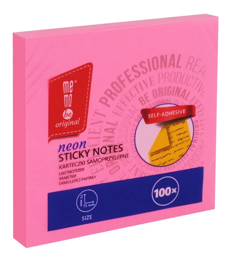 Karteczki Samoprzylepne Memobe, Neon Różowy, 100 Kart., 75X75 Mm
