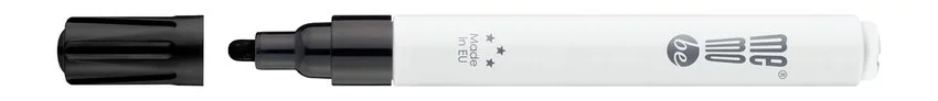 Marker olejowy MemoBe z tuszem w kolorze czarnymi okrągłą końcówką w rozmiarze 2-4 mm. Przeznaczony do trwałego znakowania i dekorowania prawie wszystkich powierzchni, jak np.: metalu, szkła, plastiku, kartonu, drewna itd. Wysoce kryjący, doskonały również do transparentnych powierzchni. Wodoodporny i szybkoschnący. Zawiera pigmentowany tusz o subtelnym, niedrażniącym zapachu bez zawartości ksylenu i toluenu. Odporny na niskie i wysokie temperatury (kolory pozostają widoczne nawet w 300°C, znakowanie widoczne nawet do 1000°C). Plastikowa obudowa markera z wentylowaną skuwką zgodną z normą ISO 11540:1993. Pojemność tuszu: 6 ml. Dostępny w 8 kolorach: białym, czarnym, czerwonym, niebieskim, zielonym, żółtym, srebrnym i złotym. Wyprodukowany w Niemczech. Dostarczany w opakowaniu 10 szt.