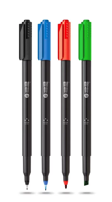 Marker permanentny OHP MemoBe z tuszem w kolorze zielonym i ściętą końcówką w rozmiarze 1-3 mm. Przeznaczony do trwałego znakowania i dekorowania prawie wszystkich powierzchni, jak np: folii, płyt CD/DVD, szkła, plastiku, metalu, drewna, papieru itd. Wodoodporny i szybkoschnący, a także nieścieralny tusz na bazie alkoholu. Obudowa markera wykonana w 30% z tworzyw z recyklingu. Wyposażony w wentylowaną skuwkę zgodną z normą ISO 11540:1993. Dostępny w 4 kolorach: czarnym, czerwonym, niebieskim, zielonym. Wyprodukowany w Europie. Dostarczany w opakowaniu 10 szt.