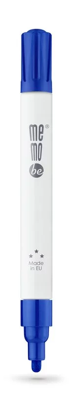 Marker olejowy MemoBe z tuszem w kolorze niebieskim i okrągłą końcówką w rozmiarze 2-4 mm. Przeznaczony do trwałego znakowania i dekorowania prawie wszystkich powierzchni, jak np.: metalu, szkła, plastiku, kartonu, drewna itd. Wysoce kryjący, doskonały również do ciemnych i transparentnych powierzchni. Wodoodporny i szybkoschnący. Zawiera pigmentowany tusz o subtelnym, niedrażniącym zapachu bez zawartości ksylenu i toluenu. Odporny na niskie i wysokie temperatury (kolory pozostają widoczne nawet w 300°C, znakowanie widoczne nawet do 1000°C). Plastikowa obudowa markera z wentylowaną skuwką zgodną z normą ISO 11540:1993. Pojemność tuszu: 6 ml. Dostępny w 8 kolorach: białym, czarnym, czerwonym, niebieskim, zielonym, żółtym, srebrnym i złotym. Wyprodukowany w Niemczech. Dostarczany w opakowaniu 10 szt.