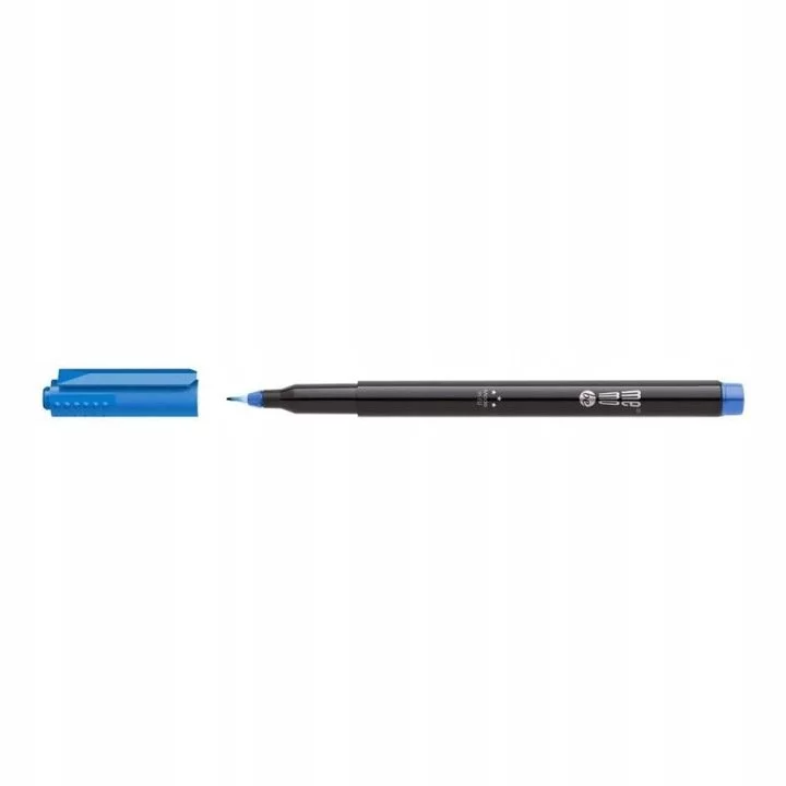 Marker permanentny OHP MemoBe z tuszem w kolorze niebieskim i okrągłą końcówką w rozmiarze 0,5 mm. Przeznaczony do trwałego znakowania i dekorowania prawie wszystkich powierzchni, jak np: folii, płyt CD/DVD, szkła, plastiku, metalu, drewna, papieru itd. Wodoodporny i szybkoschnący, a także nieścieralny tusz na bazie alkoholu. Obudowa markera wykonana w 30% z tworzyw z recyklingu. Wyposażony w wentylowaną skuwkę zgodną z normą ISO 11540:1993. Dostępny w 4 kolorach: czarnym, czerwonym, niebieskim, zielonym. Wyprodukowany w Europie. Dostarczany w opakowaniu 10 szt.