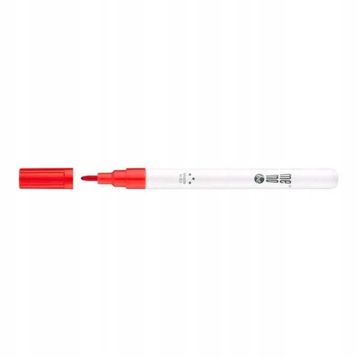 Marker olejowy MemoBe z tuszem w kolorze czerwonym i okrągłą końcówką w rozmiarze 1-1,5 mm. Przeznaczony do trwałego znakowania i dekorowania prawie wszystkich powierzchni, jak np.: metalu, szkła, plastiku, kartonu, drewna itd. Wysoce kryjący, doskonały również do ciemnych i transparentnych powierzchni. Wodoodporny i szybkoschnący. Zawiera pigmentowany tusz o subtelnym, niedrażniącym zapachu bez zawartości ksylenu i toluenu. Odporny na niskie i wysokie temperatury (kolory pozostają widoczne nawet w 300°C, znakowanie widoczne nawet do 1000°C). Plastikowa obudowa markera z wentylowaną skuwką zgodną z normą ISO 11540:1993. Pojemność tuszu: 3 ml. Dostępny w 8 kolorach: białym, czarnym, czerwonym, niebieskim, zielonym, żółtym, srebrnym i złotym. Wyprodukowany w Niemczech. Dostarczany w opakowaniu 10 szt.