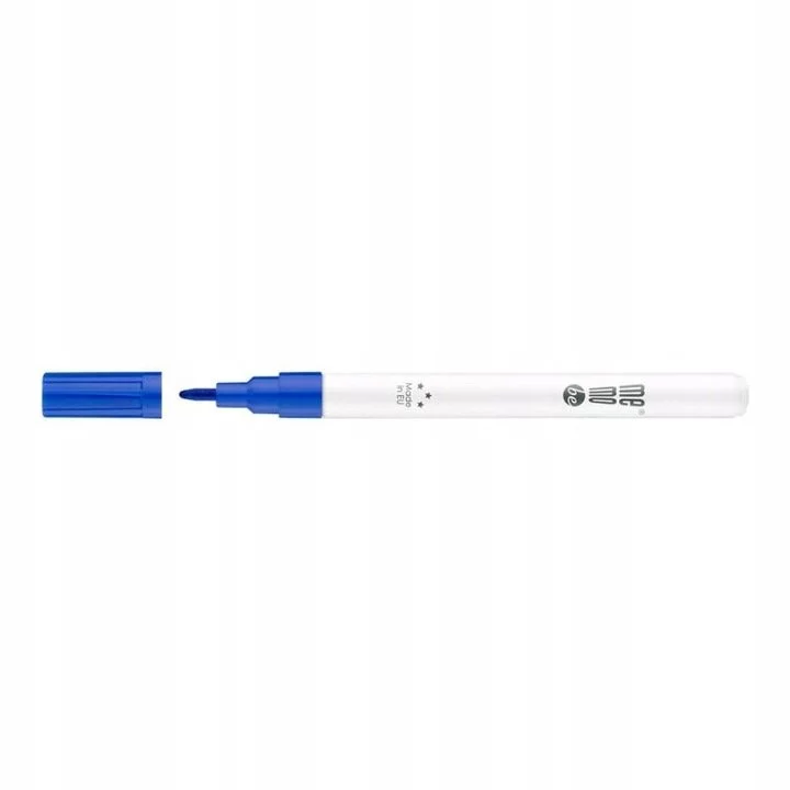 Marker olejowy MemoBe z tuszem w kolorze niebieskim i okrągłą końcówką w rozmiarze 1-1,5 mm. Przeznaczony do trwałego znakowania i dekorowania prawie wszystkich powierzchni, jak np.: metalu, szkła, plastiku, kartonu, drewna itd. Wysoce kryjący, doskonały również do ciemnych i transparentnych powierzchni. Wodoodporny i szybkoschnący. Zawiera pigmentowany tusz o subtelnym, niedrażniącym zapachu bez zawartości ksylenu i toluenu. Odporny na niskie i wysokie temperatury (kolory pozostają widoczne nawet w 300°C, znakowanie widoczne nawet do 1000°C). Plastikowa obudowa markera z wentylowaną skuwką zgodną z normą ISO 11540:1993. Pojemność tuszu: 3 ml. Dostępny w 8 kolorach: białym, czarnym, czerwonym, niebieskim, zielonym, żółtym, srebrnym i złotym. Wyprodukowany w Niemczech. Dostarczany w opakowaniu 10 szt.