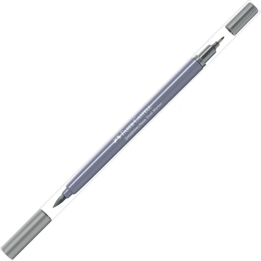 Dwustronny pisak akwarelowy Goldfaber Aqua Faber-Castell w kolorze 230 (cold grey I). Zachwyca niezwykłą intensywnością koloru oraz wszechstronnością zastosowania. Przy użyciu mokrego pędzla szkic lub motyw zaprojektowany za pomocą tego pisaka można zamienić w wspaniały obraz z efektem akwareli. Pozwala na dużo bardziej precyzyjną pracę niż przy użyciu tradycyjnych farb akwarelowych. Doskonały do wszelkich zastosowań kreatywnych i artystycznych. Pisak ma dwie końcówki: miękką, elastyczną końcówkę pędzelkową do zadań artystycznych i cienką końcówkę 0,6 mm do konturów i detali. Tusz na bazie wody jest bezwonny i bezkwasowy, o neutralnym PH. Nie pozostawia smug i nie przecieka przez papier oraz jest w pełni rozpuszczalny w wodzie. Zatyczka i korpus jest wykonana w 100% z materiału pochodzącego z recyklingu, w związku z czym mogą pojawić się niewielkie różnice kolorystyczne w częściach zewnętrznych.