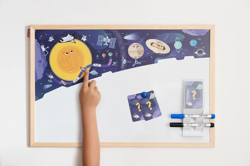 Tablica Edukacyjna Memobe, Whiteboardgame: Space Adventure!, Nadruk Kosmosu, Zestaw Do Gry, Wersja Pl, Rama Drewniana, 60X40 Cm