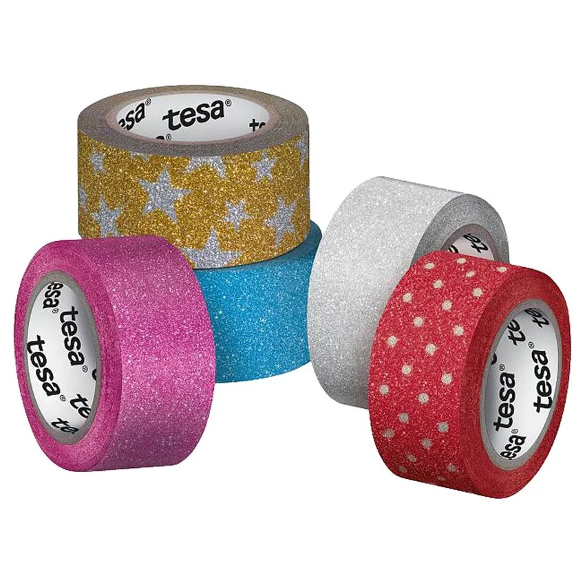 Display taśm dekoracyjnych tesa® washi tape brokatowych, składa się z 36 taśm dekoracyjnych w różnych kolorach i wzorach. Są wśród nich: różowa, srebrna, czerwona w kropki, niebieska, złota w gwiazdki. Taśmy te to fantastyczny sposób na dekorację i upiększanie przedmiotów, jak i wnętrz. Brokat nadaję blasku i niepowtarzalności tym taśmom. Produkt nie pozostawia śladów na powierzchniach z których zostanie usunięty. Można go łatwo urywać ręką. Display zawiera 36 sztuk produktu w pojedynczych opakowaniach wraz z kodami EAN na każdej sztuce.