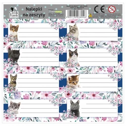 Naklejki Na Zeszyt 8szt. Koty /Derform